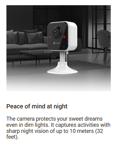 Simple but reliable, the H1c can be your essential indoor camera to keep an eye on your kids and pets, while offering protection to your home from day to night. As a petite, plug-in camera that fits any home space, the camera gets all the basics right. It offers great video quality, sharp night vision, motion detection and two-way audio, and provides extra convenience with its easy-to-install design, sleep mode, three sound-alert modes, and more.