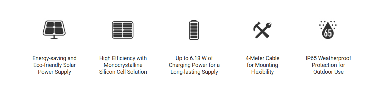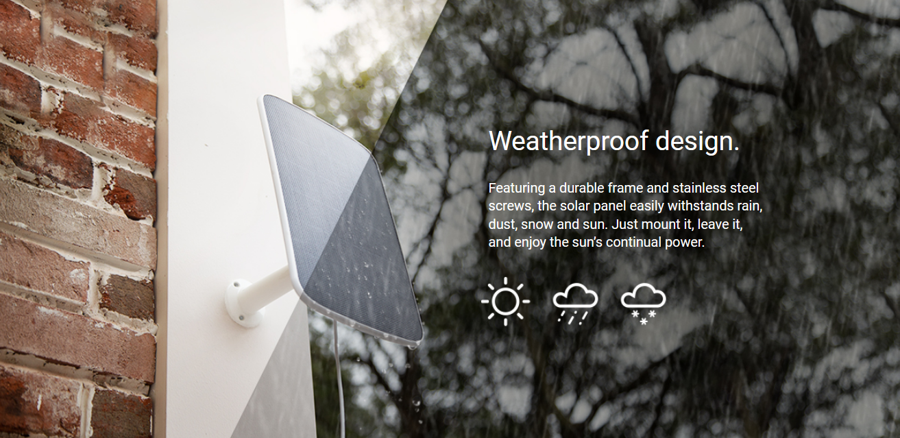 Connect your EZVIZ battery-powered camera to our Weatherproof Solar Panel to capture the sun’s free, clean energy – and enjoy year-round security.