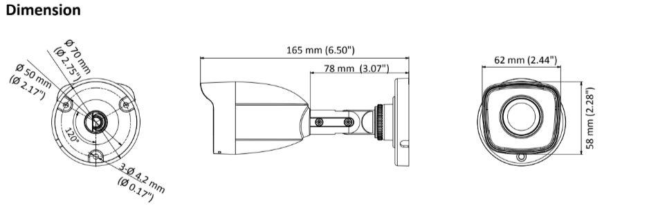 - Max. 1200 m for 720p HDTVI signal